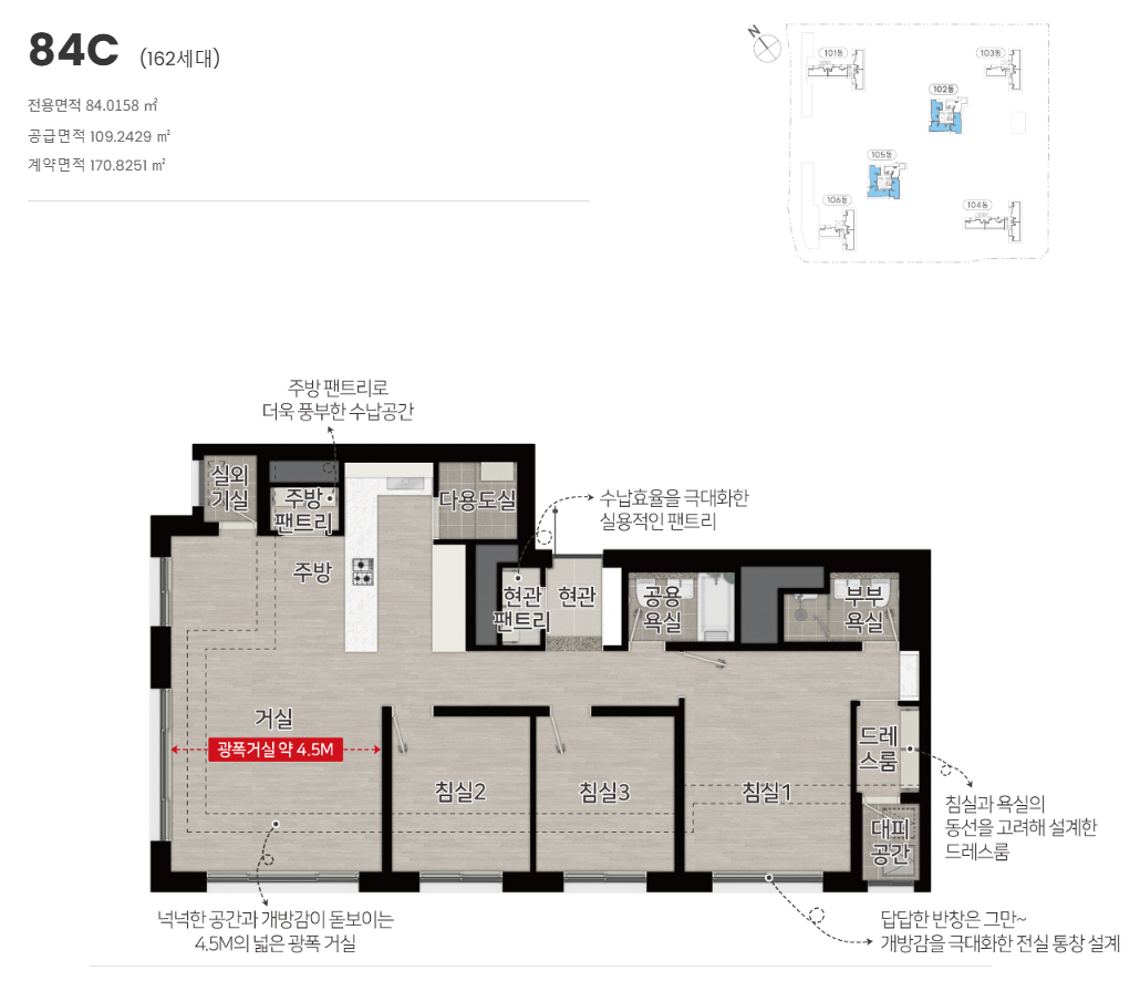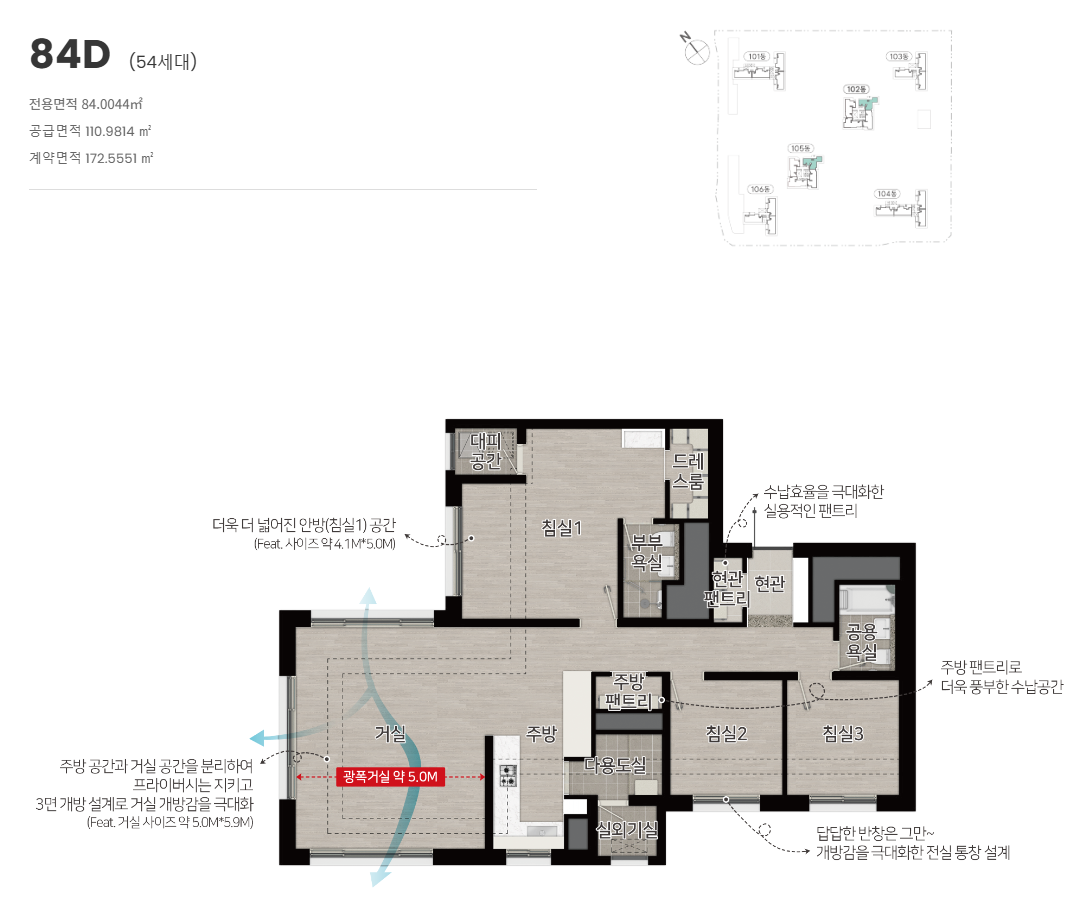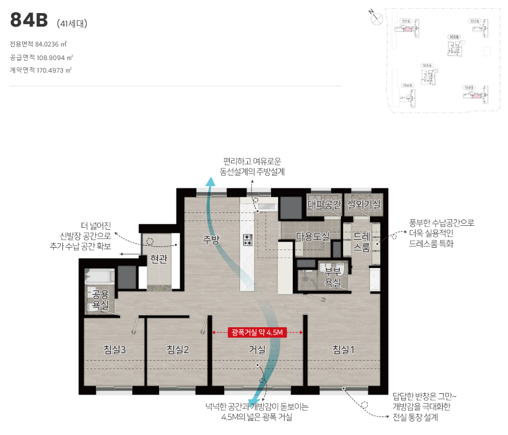 ■ 공급위치 : 인천광역시 연수구 송도동 543번지 (송도국제도시 11공구 RC3BL)■ 공급규모 : 아파트 지하 1층, 지상 29층, 6개동 총 501세대■ 입주시기 : 2029년 03월 예정■ 타입 : 84㎡■ 건설사 : (주)유승건설, (주)유승종합건설